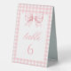 Elevate your classic preppy baby girl shower decor with our elegant table number tent signs. Featuring a charming baby pink gingham bow, these table signs add a sweet, stylish touch to your celebration, perfect for creating a refined and cohesive look.