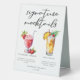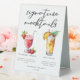 Cette signature chic de plage mocktails menu panneau de tente comporte une simple typographie noire au-dessus de 2 boissons mignonnes et leurs ingrédients pour votre bar mariage d'été. Une boisson Daiquiri aux fraises vierge et une Piña Colada non alcoolisée ajoutent une touche cool à votre menu du bar. Complétez avec les noms du couple et la date de leur réception.