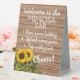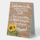 Panneau en polystyrène moderne mais rustique avec le texte "Welcome to the Mimosa bar" et des instructions simples pour verser un délicieux cocktail Mimosa sur une ferme populaire patiné grange planches motif arrière - plan. Une façon amusante d'invitation votre réception de mariage, fiançailles, anniversaire ou invités de fête d'anniversaire pour se mélanger une boisson alcoolisée rafraîchissante à votre événement spécial.