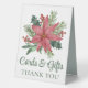 Assurez-vous que vos invités peuvent facilement laisser leurs cartes et cadeaux à votre table cadeau mariage avec un délicieux signe floral de Noël rouge. L'enseigne présente des fleurs de poinsettia rouge nichées dans une végétation luxuriante de Noël, dégageant un charme fou. Ce panneau de cartes et de cadeaux est parfait pour divers événements tels que les mariages, fêtes de Noël, collecteurs de fonds, organismes de bienfaisance et entreprises. Veuillez faire défiler vers le bas pour découvrir d'autres produits et cadeaux correspondants que vous trouverez attrayants.