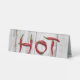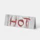 Les mots "HOT" sont en "hot, red cayenne chili peppers"