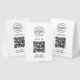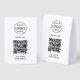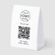 A simple custom white double-sided paper table tent sign template in a modern minimalist style which can be easily updated with your company logo, QR code and custom text. This template is designed for cafes, restaurants, bars and hospitality event catering businesses that want a modern and professional display without visual clutter. Easy to adapt for retail counters, cash wrap areas, studios, salons, food service setups, events or trade shows. The layout keeps everything centered and easy to read so customers can find your details at a glance. The editable fields allow you to update your business info quickly and adjust the text to suit your purpose. A simple and polished choice for everyday business use.