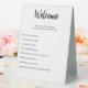 L'accueil apparaît dans un script noir en haut de cette maison règle signe pour une maison de location de courte durée. Une courte déclaration d'ouverture est sous le script. Ensuite, il y a huit règles pour une maison de location à court terme. Tout le texte est noir. Tout le texte peut être modifié pour refléter les règles uniques de votre location à court terme. Ce produit est recto-verso.