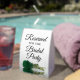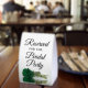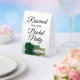Ce simple panneau de table permettra à vos invités mariages de savoir quels espaces sont réservés à la fête de la mariée. Le design intemporel classique est orné d'élégants lettrages de script et d'un seul rose vert émeraude à longue tige posé sur son côté, mis en miroir dans un bassin d'eau.