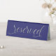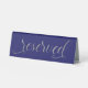 Panneau de tente de table réservée bleu marine avec élégante fausse calligraphie argentée. Simple, personnalisable.