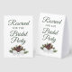 Ce simple panneau de table permettra à vos invités mariages de savoir quels espaces sont réservés à la fête de la mariée. Le magnifique design boho chic floral comprend d'élégants lettrages vert forêt et un ensemble de pinecones aquarelles peintes à la main et des branches de pin nouées avec un arc en satin blanc.