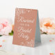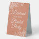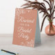 Ce simple panneau de table permettra à vos invités mariages de savoir quels espaces sont réservés à la fête de la mariée. La belle terre cuite, le corail ou les couleurs orange clair sont ornés d'élégants lettrages avec des boucles blanches décoratives et des tourbillons dans les coins.