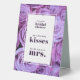 Moderne minimaliste Roses violets Combien de baisers Fête des mariées Tente de table de jeu Célébrez la future mariée avec cet élégant minimaliste moderne violet Roses Combien de baisers Fête des mariées Tente de table de jeu Signe. Ce design personnalisable présente en toile de fond un motif d'aquarelle de roses violets romantiques, parfaitement complété par une disposition blanche propre qui met en évidence tous vos détails personnalisés. Les instructions du jeu, "devinez combien de 'baisers' pour la prochaine sera 'mrs.', sont placées dans un élégant script en gras. Le panneau est également personnalisé avec le nom de la future mariée et les mots "Fête des mariées" dans une police moderne et design. Ce panneau de tente recto verso est une façon charmante et pratique de faire participer les clients à une activité ludique de douche nuptiale. C'est une solution professionnelle et durable pour votre décor événementiel, qui sert de joli point focal sur une table de jeu. Au verso, vous pouvez télécharger une photo mémorable et ajouter le texte "Future Mrs. [Nouveau Nom]" dans la typographie élégante, créant un beau souvenir que les invités aimeront. Personnalisez facilement ce panneau de tente de table pour correspondre à votre thème de douche nuptiale.