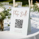 Faites en sorte que vos mariages ou invités de l'événement puissent télécharger facilement leurs photos de cabines avec ce panneau de table de code QR. "Photo Booth" apparaît en haut, avec de brèves instructions en dessous. Entrez l'URL de vos images et le code QR sera mis à jour. Vous pouvez scanner le code avec votre téléphone pour voir ou télécharger leurs snaps.