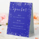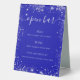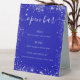 Un arrière - plan bleu royal. Décoré de parties scintillant en faux argent, pétillant. Avec le texte : Ouvre la barre. Personnalisez et ajoutez le menu de votre barre. Texte blanc.