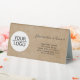Rustic Ajoutez votre logo avec le texte personnalisé Société promotionnel Panneau de tente de table. Arrière - plan beige rustique. Insérez votre logo dans le modèle et customisez le texte, le nom de l'entreprise, l'adresse et les coordonnées.