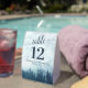 Ces panneaux de tente aideront non seulement vos invités à trouver leurs tables, mais ils rendront également votre réception de mariage plus belle. Le design est à la fois rustique et élégant avec une scène de montagne avec une pinède bleue entourée de brume ou de brouillard. Le titre est en calligraphie de script en dentelle avec des chiffres en gras afin que vos invités puissent facilement trouver la bonne table. Il y a de la place pour les noms du couple et la date du mariage.