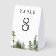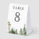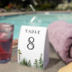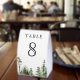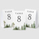 Elegant wedding table number featuring beautiful mountains and pine trees with modern typography.