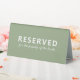 Sage Green Moderne Élégant Mariage Réservé Table Tente Signal