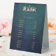 Énumérez votre menu de salon de coiffure sur cette élégante tente de table modèle de style vintage avec fausse feuille d'or Typographie de cheveux avec lettrage et ciseaux floraux rose et vert menthe, et script doré chic sur une couleur bleu marine foncé lavé arrière - plan de style vintage. +++++++++++++++++++++ Convient pour salon de coiffure de luxe exclusif ou spa.