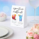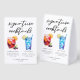 This chic signature cocktails table tent sign features simple black typography above 2 drinks and their ingredients for your beach wedding bar. A cute summer Sangria drink and Blue Hawaii cocktail drawing add a cool flair to your bar menu. Complete with the couple's names and date for their reception.