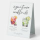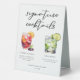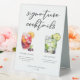 Ce panneau de tentes de table à cocktails chic présente une typographie noire simple au-dessus de 2 boissons et leurs ingrédients pour votre bar mariage. Un joli dessin Sangria et Gin et Tonic d'été ajoute un flair cool à votre menu bar. Complétez avec les noms du couple et la date de leur réception.