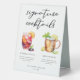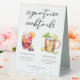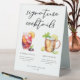 Ce panneau de tentes de table à cocktails chic présente une typographie noire simple au-dessus de 2 boissons et leurs ingrédients pour votre bar mariage. Un joli dessin de mule Sangria et Moscou d'été ajoute une touche cool à votre menu du bar. Complétez avec les noms du couple et la date de leur réception.