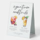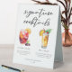 Ce panneau de tentes de table à cocktails chic présente une typographie noire simple au-dessus de 2 boissons et leurs ingrédients pour votre bar mariage. Un joli dessin de Sangria et Piña Colada d'été ajoute une touche cool à votre menu du bar. Complétez avec les noms du couple et la date de leur réception.