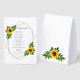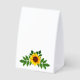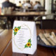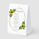 Design features sunflowers and botanical leaves over a printed gold colored geometric frame.