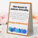Conçu par un artiste autiste, ce panneau de tente de table 6x8 est parfait pour une table devant votre porte à Halloween. En tant qu'enfant, le truc ou le traitement était extrêmement anxieux pour elle, et elle voulait créer un signe qui apporte confort et compréhension aux autres. Le panneau dit : "Cette maison est autiste. Nous comprenons si vous ne dites pas "tricheur ou traiter", ou si vous évitez le contact visuel ou ne pouvez pas répondre aux questions. Ça va. Joyeux Halloween !" Faites d'Halloween inclusif et agréable pour tous avec ce geste chaleureux et compatissant.