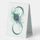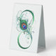 Le symbole de l'infinity with a bright, green, artistic peacock feather on a white background. Tattoo style.
