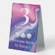 Une façon amusante et moderne de guider les joueurs de Bunco de table en table. Arrière - plan holographique rose et violet. Trois dés Bunco ou Bunko de chance blanc. Les gagnants Passez à la table suivante et les perdants restent. Tableau trois. Le texte peut être modifié pour configurer autant de tables que vous le souhaitez. Longue durée. Inclure dans votre trousse Bunco.