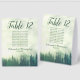 Ces panneaux de tente mariages de numéro de table présentent un design rustique avec des pins verts noyés dans la brume ou le brouillard. Il y a de l'espace pour le numéro de table et 10 noms pour faciliter la recherche de sièges par vos invités.