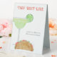 Ce panneau de table présente une peinture aquarelle d'un verre de margarita et de tacos. Personnalisez avec vos informations et modifiez la formulation pour l'adapter à votre événement.
