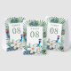 Peacock theme Indian wedding table number cards featuring a beautiful peacock, jasmine flowers and tropical leaves.