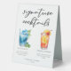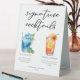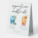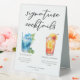 Cette enseigne de tentes à cocktails de l'île tropicale présente une typographie noire simple au-dessus de 2 de vos boissons préférées et de leurs ingrédients pour votre bar mariage côtier à la plage. Un dessin chic Blue Lagoon et Tequila Sunrise ajoutent une touche amusante à votre menu du bar. Complétez avec les noms du couple et la date de leur réception.