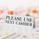 Idéal pour toute chaîne d'affaires ou de supermarchés qui sert les clients en utilisant des revendeurs. Un arrière - plan blanc a une police noire en gras qui dit "s'il vous plaît utiliser la prochaine caisse". Personnalisez le libellé à n'importe quel de votre choix et n'hésitez pas à ajouter une couleur arrière - plan et à modifier la couleur, le style et la taille de la police en fonction de vos besoins professionnels.