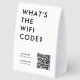This stylish white paper table tent tabletop sign provides a clean and modern way for customers or guests to access your wifi network instantly with bold typography quote "What's the WiFi Code?". The design features a central QR code area that can be linked to your wifi details so users can scan to connect without typing a password. Enter your network name and any custom instructions that fit your need. The minimalist layout keeps everything readable which works well for cafes, salons, studios, offices, rental properties, pop ups or event venues. Because the template is fully editable, it adapts easily to branding updates or new wifi information. A practical and polished solution that helps streamline customer access and elevates your in person experience.