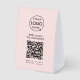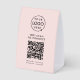 This blush pink paper table tent tabletop sign provides a clean and modern way for customers or guests to access your wifi network instantly. The design features a central QR code area that can be linked to your wifi details so users can scan to connect without typing a password. Above you can upload your business logo and below enter your network name and any custom instructions that fit your need. The minimalist layout keeps everything readable which works well for cafes, salons, studios, offices, rental properties, pop ups or event venues. Because the template is fully editable, it adapts easily to branding updates or new wifi information. A practical and polished solution that helps streamline customer access and elevates your in person experience.