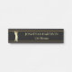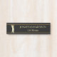 Cette plaque d'identification élégante est parfaite pour un directeur de club de professionnel de golf ou de golf. Elle comporte un golfeur de silhouette d'or en plein rendement à l'aile gauche. Au de centre droite est votre nom et titre, aussi en or. Le dessus et le bas est encadré par les lignes plus foncées minces d'or. Le texte et l'image sont placés sur un arrière - plan noir.