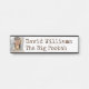 Plaque d'identification de porte orientée drôle d'homme des cavernes avec des graphiques de bande dessinée d'homme des cavernes, de l'aile gauche du plat. Personnalisez le texte fait sur commande pour la porte du bureau de vos patrons.