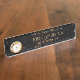 Plaque d'identification de sembler de marbre avec le signe de bureau d'horloge. Texte en or pâle (#E6BE8A) et montré avec l'horloge.