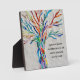 Cette Plaque unique est décorée avec une mosaïque colorée Arbre de vie. Ajoutez le devis que vous avez choisi pour le personnaliser. Cliquez sur Personnaliser pour modifier la police, la taille de police et la couleur de police. Mosaïque originale © Michele Davies.