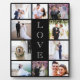 Une plaque de collage de photos noire pour les jeunes mariés comportant un collage de 10 photos de votre jour de mariage, fiançailles, lune de miel, cortège de la mariée, garçons d'honneur, famille, etc., et "AMOUR" écrit au milieu en lettrage blanc élégant.