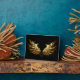 Des ailes d'ange doré brillantes sur un arrière - plan sombre. Des ailes dorées.