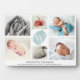 Rappelez-vous l'arrivée de votre nouveau-né bébé avec un collage de 6 photos élégant, décoré d'un monogramme sur arrière - plan bleu aquarelle au milieu et personnalisable nom de bébé et statistiques de naissance en bas. Si vous avez besoin d'aide pour personnaliser ce faire-part de naissance, envoyez-nous une ligne au messager.
