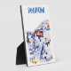 Magnifique Plaque de peinture à l'aquarelle Santorini Greece avec de l'Easel avec la célèbre île grecque et des maisons aux toits bleus. Extraordinaire décor maison de vacances idée cadeau et souvenir.