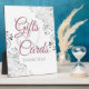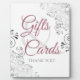 Ce magnifique panneau ou plaque autoportant facilitera la tâche de vos invités mariages qui sauront où laisser leurs cadeaux et leurs cartes. Dispose d'un design simple mais élégant avec rose poussiéreux ou mauve rose et gris texte sur un arrière - plan blanc avec une bordure florale Silver faux feuille.