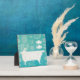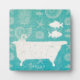 Un joli bain sur le lin bleu design avec coquillages, corail et hippocampes.