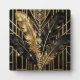 Step into the glamour of the Roaring Twenties with this stunning Art Deco masterpiece. Luxurious black and metallic gold feathers fan out dramatically, adorned with sparkling diamond-like gems in a symmetrical arrangement. Bold geometric gold lines and textured black panels frame the design, evoking opulent Gatsby-era sophistication and timeless elegance.