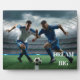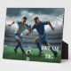 Plaque est montrée avec une photo d'un joueur de football sportif. Customisez cet objet ou achetez tel quel. Image stock