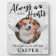 Élégante plaque souvenir pour mémorial d'animal de compagnie avec un fond en faux marbre, le titre 'à jamais dans nos cœurs', des empreintes de pattes, une photo de votre chien ou chat bien-aimé, des ailes d'ange, leur nom et la phrase de sympathie 'je vous verrai de l'autre côté'.