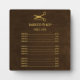 Plaque de modèle de luxe exclusif pour un salon de coiffure barbier avec faux script or sur un arrière - plan en cuir marron foncé. Veuillez noter que la texture du cuir est IMPRIMÉE.