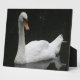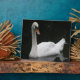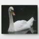 This awesome en plaques a photograph of a beautiful white swan. Le swan is a male a mute swan, you can tell it is male by the black bump on the beak. The swan is gliding gracefully across the water on a calm lake.