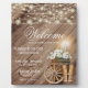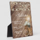 Plaque Photo Bienvenue - Baril rustique en bois et floral blanc